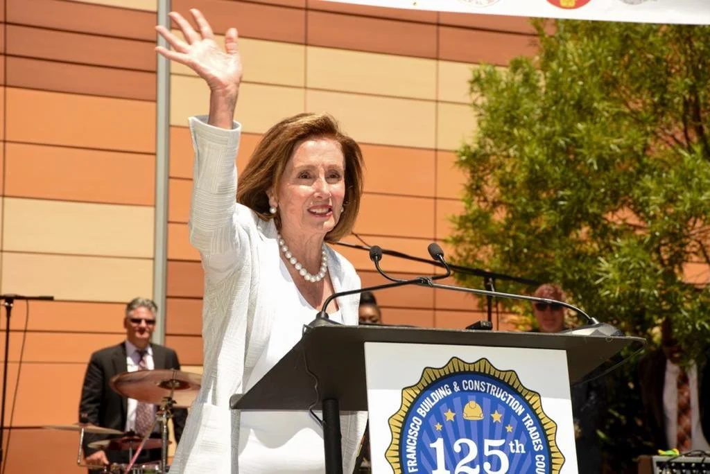 SPEAKER EMERITA NANCY PELOSI addresses the crowd at the SF Building Trades Council's 125th anniversary event at Salesforce Park on July 16, 2022. | File photo: Org Labor