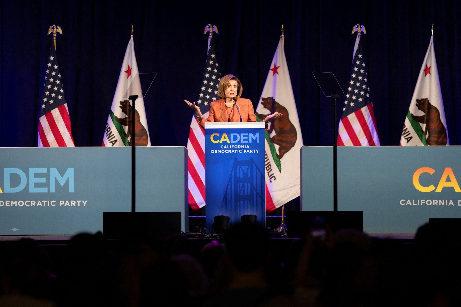 Speaker Emerita Nancy Pelosi addresses the crowd at the California Democratic Convention in San Francisco on Saturday, February 21. | Photo: Reuters