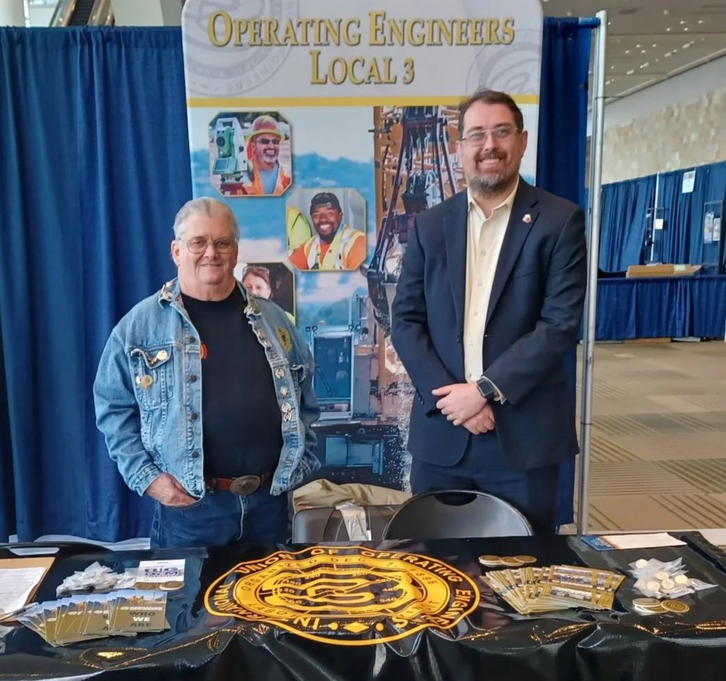 Retiree Bill Meyers and Deputy Political Director Patrick Boileau of Operating Engineers Local Union 3 man the OE 3 booth at the convention. | Photo: Jessica Zimmer