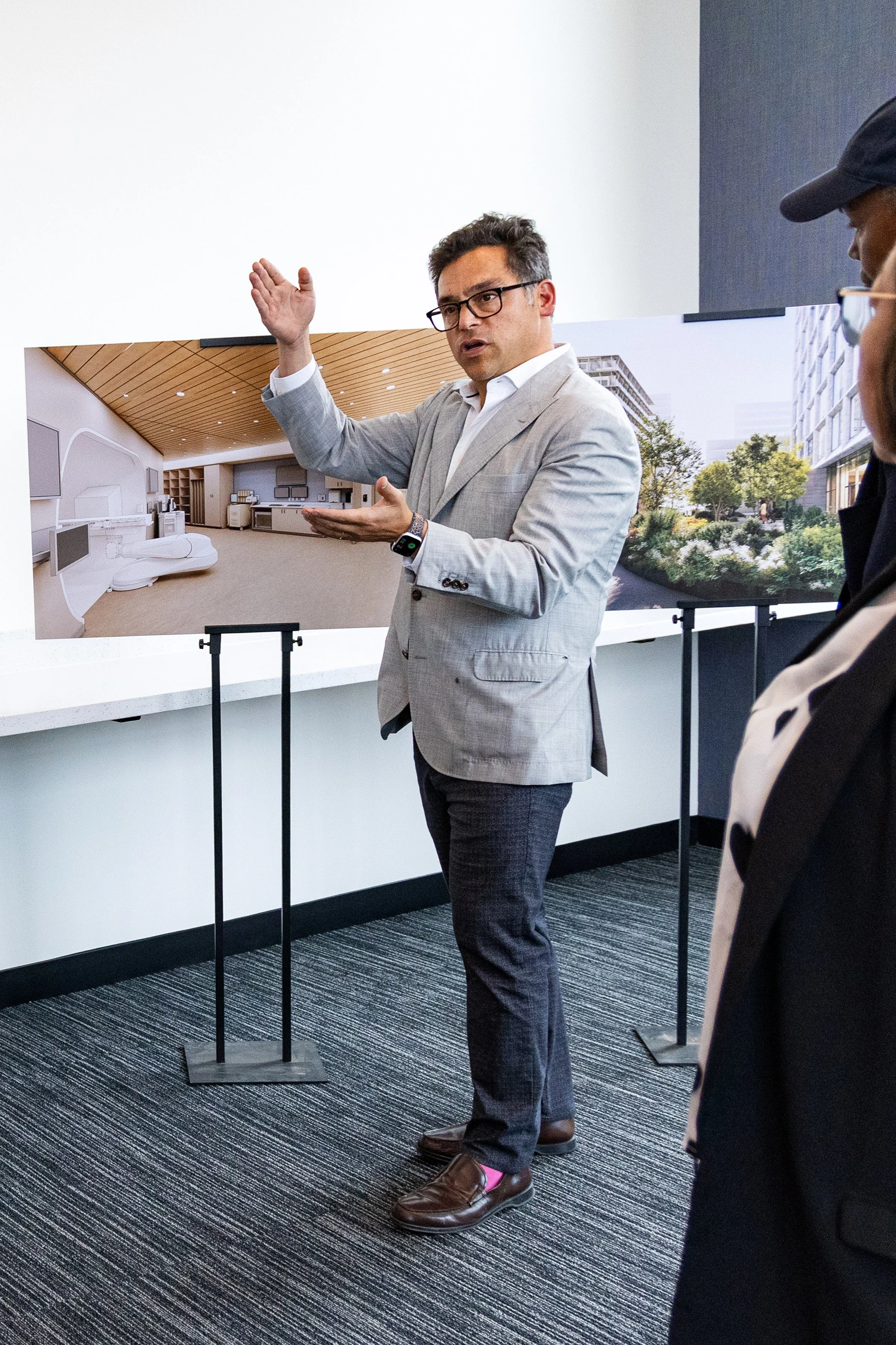 From the roof deck, the team highlighted the new UCSF cancer treatment facility currently underway on block 2 of the project site.